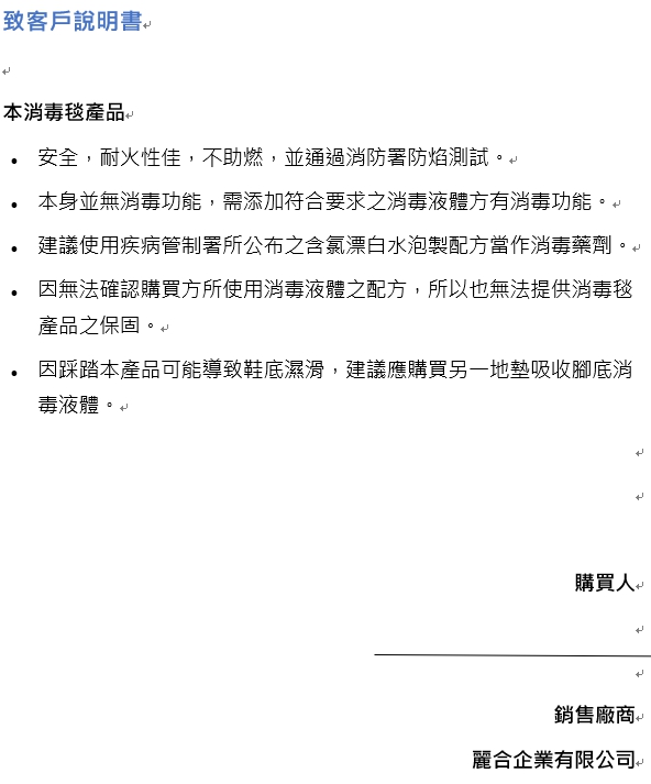 | 適用區域 | 1.大型商業大樓、政府機關、工廠及飯店 2.百貨等營業場所之大門走道、電梯及洗手間、科技公司之無塵室 |